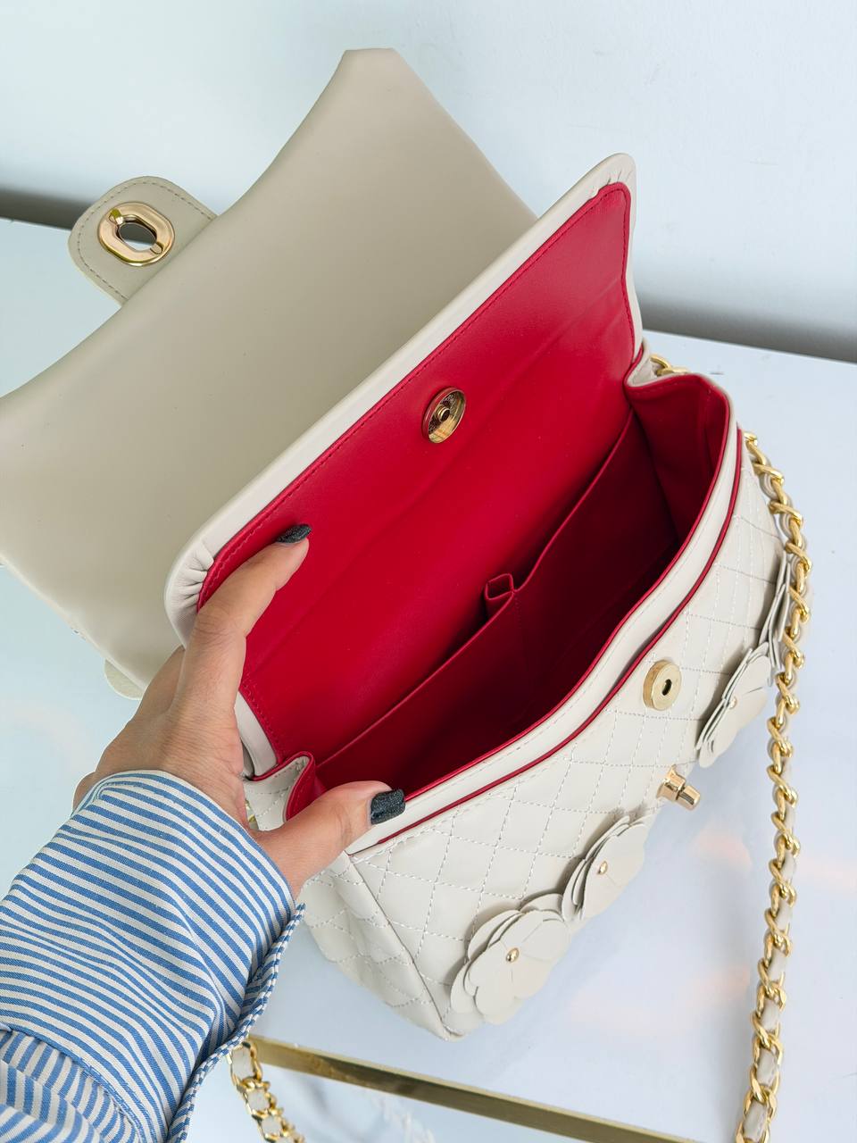 این کیف زیبا کیفیت عالی دارد. ابعاد این کار۲۵/۱۵ روی کار ظریف گلکاری شده.